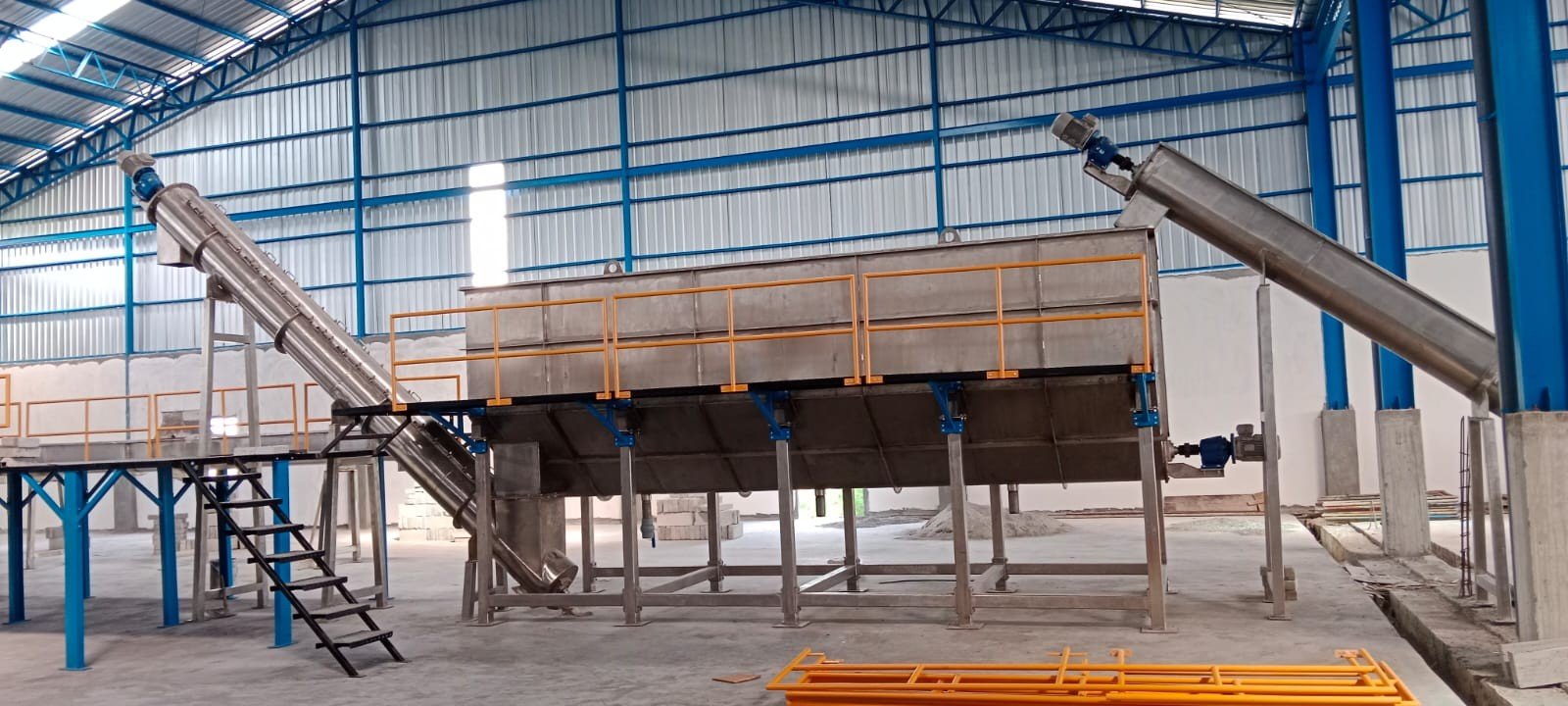 The Washing System with Buffer Tank Storage is designed for effective cleaning and controlled holding of raw materials, ensuring hygienic handling and a smooth, uninterrupted production flow. It efficiently removes dirt, fiber, and surface contaminants, and is built with food-grade materials suitable for hygienic processing environments. The integrated buffer tank provides a uniform, continuous feed to downstream equipment, while the optimized tank design prevents product damage and allows proper drainage. The system is available in multiple capacities and configurations to match specific process requirements.