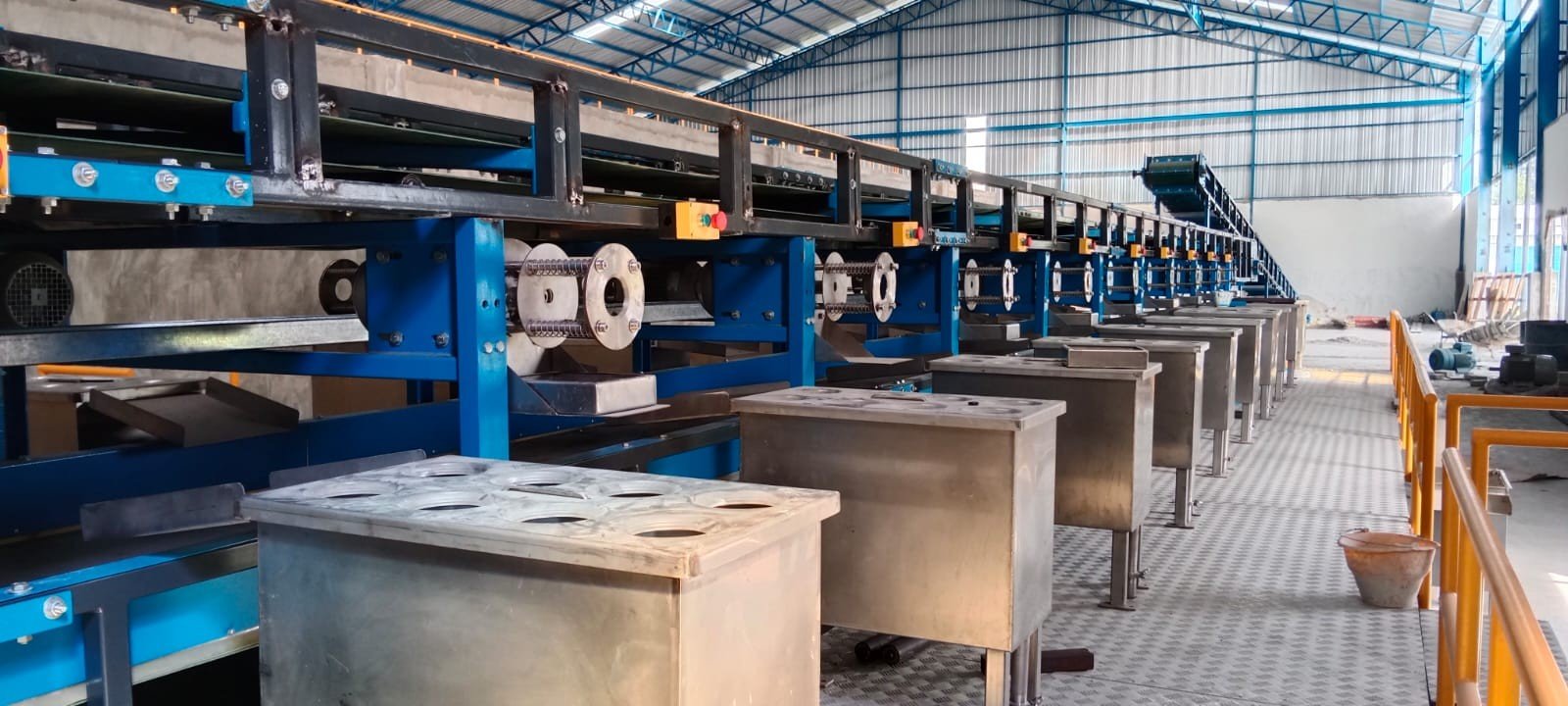 The Deshelling Cabin with Storage is designed to improve efficiency and hygiene in coconut processing by providing a controlled workspace for dehusking and deshelling along with integrated temporary storage. The enclosed workstation ensures a safe and organized operating environment, while the built-in coconut storage allows smooth material flow with reduced handling time. Built for continuous industrial use, the system features durable construction, an ergonomic layout for operator comfort, and safety panels and guards to prevent accidental contact with moving tools. An optional modular design enables easy adaptation to different plant layouts and processing capacities.
