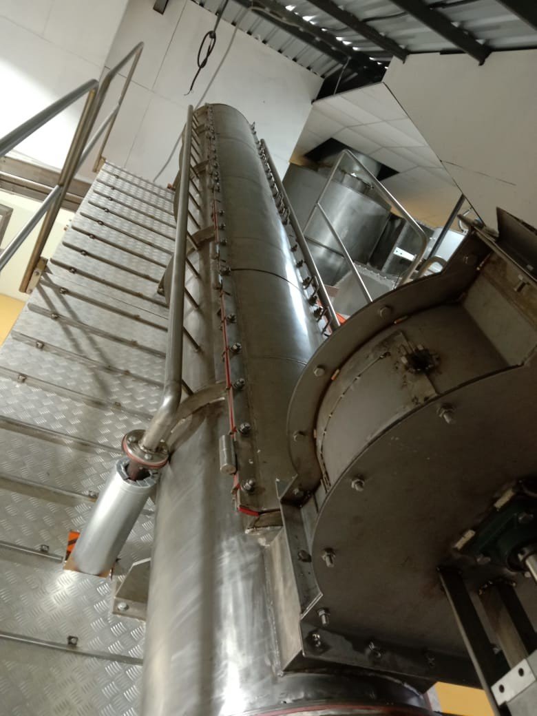 A steam blancher is commonly used in coconut powder production as a thermal pre-treatment process in which fresh coconut meat (white kernel) is exposed to saturated steam for a short duration before drying and powdering. This process helps reduce harmful bacteria, molds, and yeasts, improving product safety and export compliance, while also inactivating enzymes such as lipase and peroxidase that can cause rancidity and off-flavors. In addition, steam blanching preserves the natural white color of the coconut by minimizing enzymatic browning and ultimately improves shelf life by enhancing storage stability and reducing the risk of spoilage.